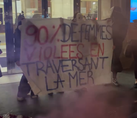 SOS Méditerranée, association pro-migrants financée en partie par des fonds publics et privés, organisait une soirée au Châtelet. Pour le Collectif Némésis, cette manifestation est une provocation : elle célèbre les traversées en mer qui causent des milliers de morts et de viols, tout en minimisant les responsabilités des passeurs et des États d’origine. Les militantes ont bloqué l’entrée et distribué des tracts pour rappeler les chiffres officiels et les témoignages de survivantes.